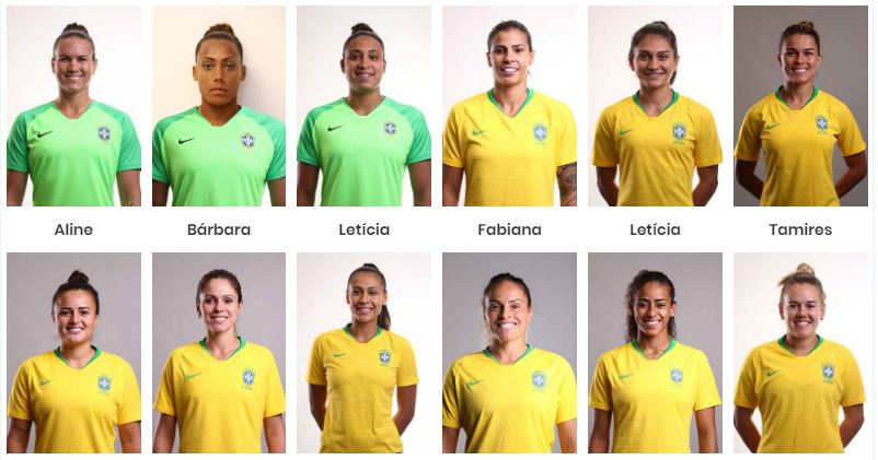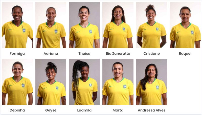Bia Zaneratto (Incheon Steel Red Angels-COR), Cristiane (São Paulo), Raquel (Huelva-ESP), Debinha (North Carolina-EUA), Geyse (Benfica-POR), Ludmilla (Atlético de Madri-ESP), Marta (Orlando Pride-EUA) e Andressa Alves (Barcelona-ESP)