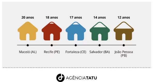 Entre as cinco capitais analisadas, que são Maceió (AL), Recife (PE), Fortaleza (CE), João Pessoa (PB) e Salvador (BA), apenas em Maceió uma pessoa levaria duas décadas para comprar um imóvel. Em Recife, seriam 18 anos, 17 em Fortaleza, 14 em Salvador e 12 anos em João Pessoa, considerando um imóvel de mesmo tamanho.