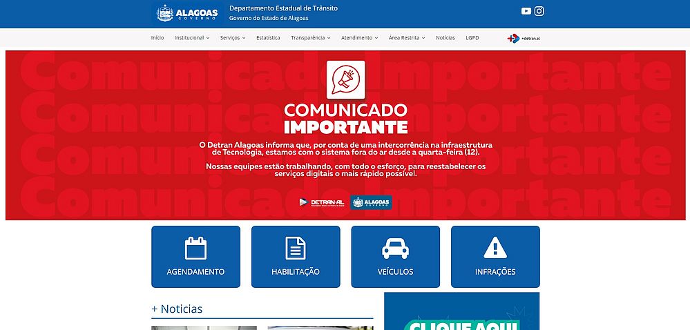 O Detran ainda repassou que as equipes do órgão estão trabalhando diuturnamente para restabelecer os serviços digitais o mais rápido possível.