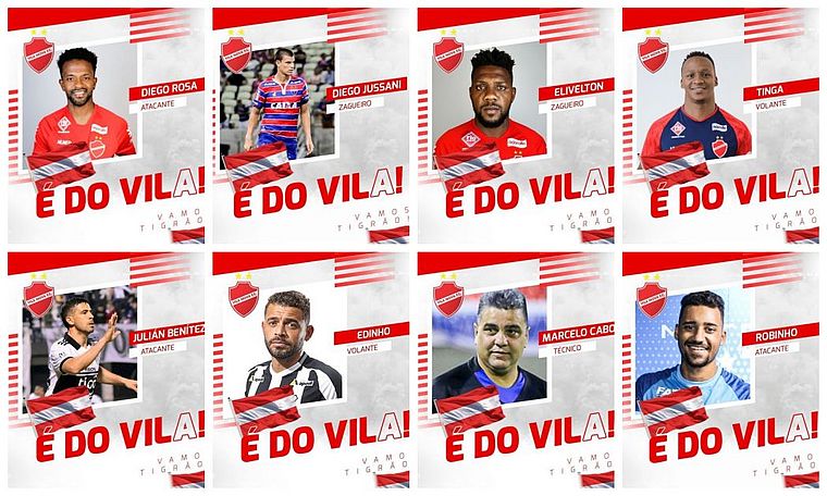 Jogadores e técnicos que já passaram por CSA e CRB, mas hoje defendem o Vila. Além deles, ainda tem o atacante Maílson (Foto: Reprodução / Vila Nova)