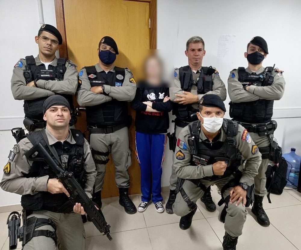 Nas imagens divulgadas pela Polícia, Mariana aparece acenando já aliviada ainda na viatura, e em seguida fez até pose ao lado de um grupo de policiais. Veja as imagens:
