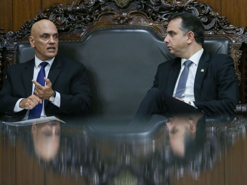 Ministro Alexandre de Moraes levou propostas para a PL das Fake News para o presidente do Senado, Rodrigo Pacheco. Foto: Agência Brasil |
