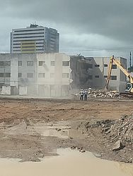 Nesta segunda-feira (06), começou mais uma etapa de demolições de prédios colapsados no bairro Pinheiro, em Maceió, localizados em área de instabilidade de solo provocada pela extração de sal-gema. Desta vez serão demolidos os blocos 10, 14, 16 e 17 do Conjunto jardim das Acácias, totalizando 96 apartamentos.