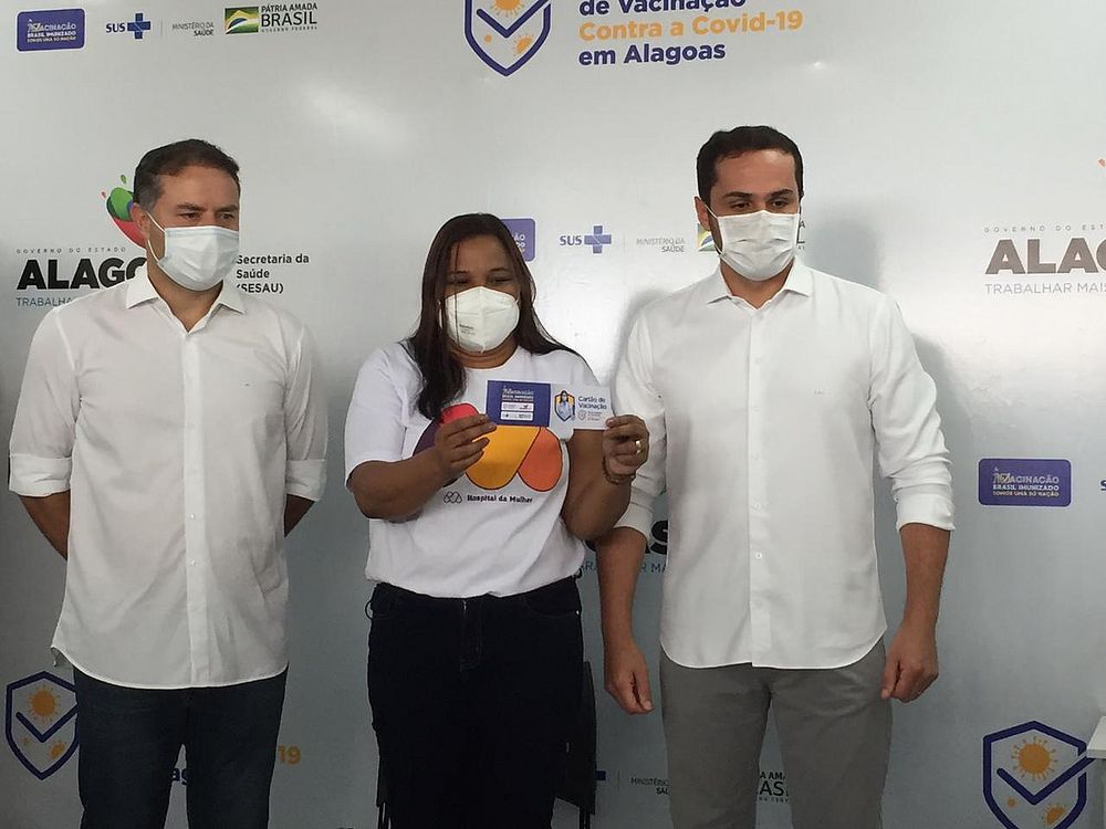 A aplicação deu início ao Plano Estadual de Vacinação do Governo de Alagoas, que recebeu ontem à noite a carga com 87.760 doses da CoronaVac.
