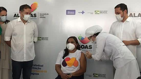 Dez meses após o primeiro decreto de emergência, Alagoas aplicou a primeira vacina contra Covid-19 em uma alagoana. A assistente social Marta Antonia, de 50 anos, recebeu nesta terça-feira, 19, no Hospital Metropolitano, no bairro Cidade Universitária, em Maceió, a primeira dose da CoronaVac, vacina produzida pelo Instituto Butantan em parceria com a empresa chinesa Sinovac.