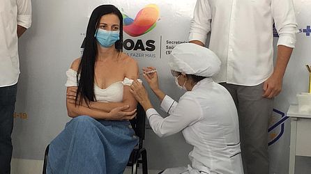 Ela estava bastante emocionada e discursou depois de receber a vacina. “É um momento ímpar. Meu primeiro agradecimento é para os voluntários e pesquisadores que fizeram essa vacina acontecer. Acreditem na vacina”, disse Marta.