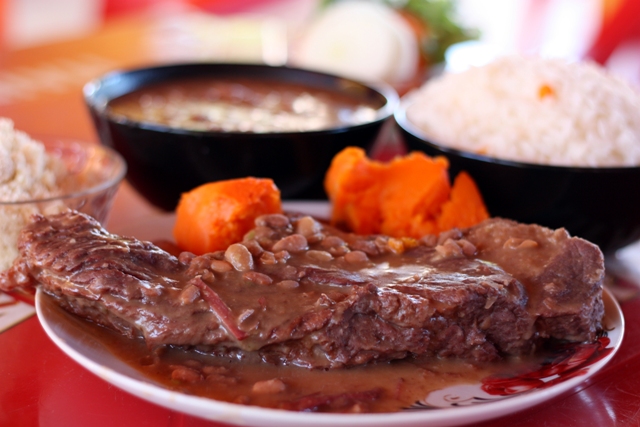 Feijoada da Maria Gorda, com 16 anos de sucesso, tem fartura de charque, e até banana da terra e batata doce. A guaria é líder de vendas, tanto é que se for lá comer, deve ficar atento ao horário, porque tem dias que às 13h não tem mais um grão de feijão para contar história.