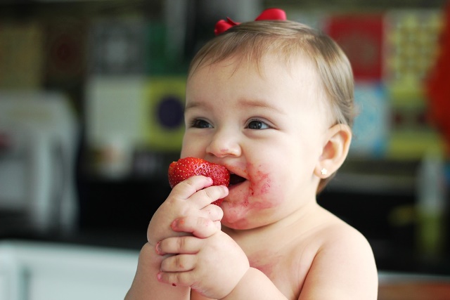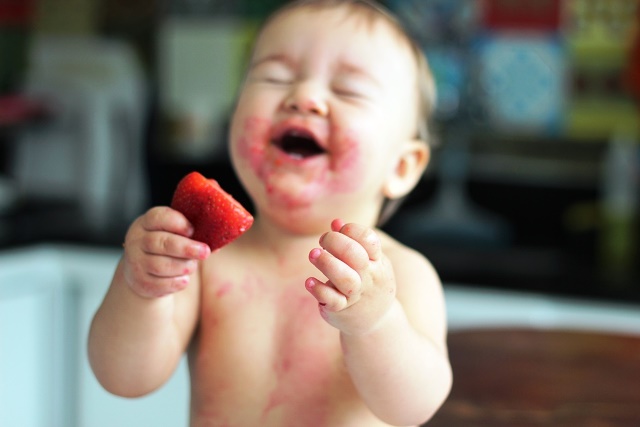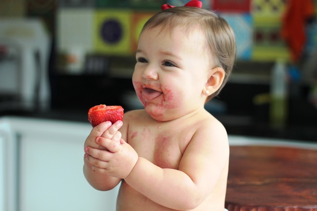 “Com os meus filhos, eu não os deixava sujar nem a mão. Hoje, não. Dou as frutas e legumes para a minha neta começar a mastigar e ficar livre para se lambuzar”. Florinha está descobrindo naturalmente o doce, o salgado e o azedinho, sem interferência do açúcar e sal.