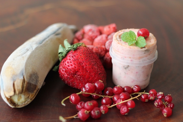 Sorvete de banana e morango sem adição de açúcar