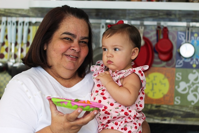 Vovó Cacau e sua netinha Florinha com 11 meses adora legumes e frutas