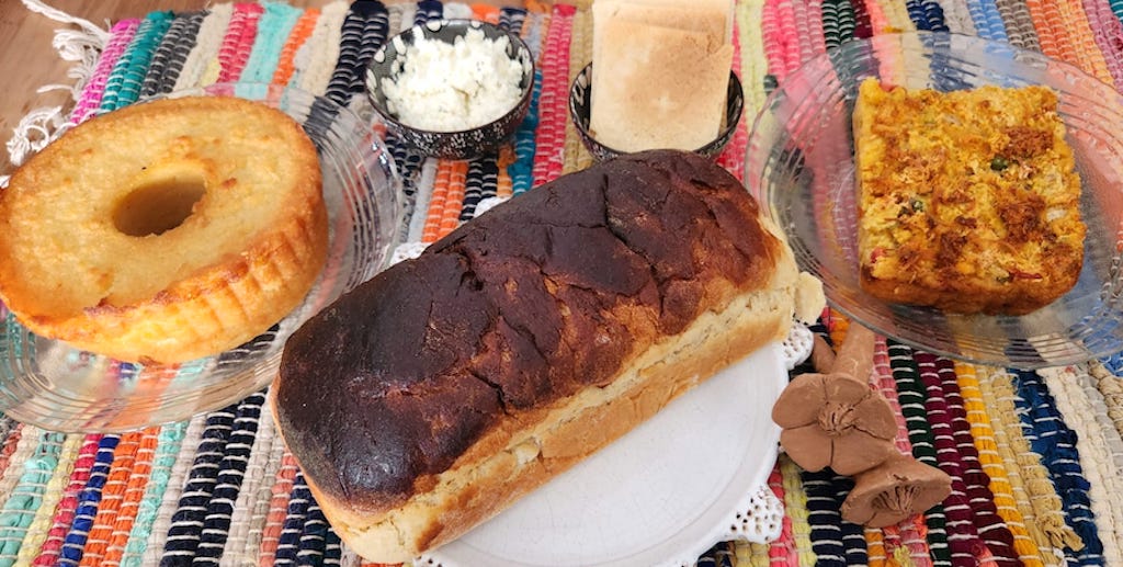 Bolo de macaxeira, pão caseiro, biscoito, torta e ricota preparado pelas irmãs Mosteiro da Natividade do Senhor