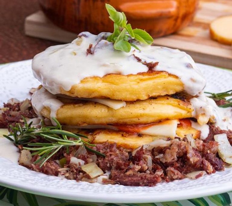 Panqueca americana feita com macaxeira pela chef Amanda Acioli, do Cantinho da Macaxeira