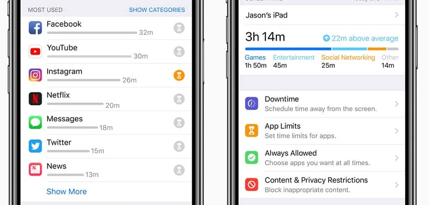 As ferramentas do Google e da Apple são bem similares nas propostas. Tanto a coleção de recursos focadas em bem-estar digital do Android quanto as funções do iOS visam mostrar ao usuário quanto tempo ele passa em cada um de seus aplicativos e no celular.