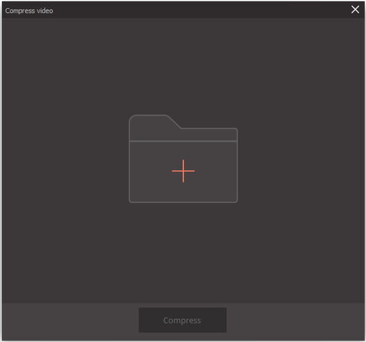 Posteriormente você terá uma nova janela para adicionar seu vídeo. Clique no ícone "+" na tela para abrir o navegador de arquivos e selecione o vídeo desejado, basta adicionar um vídeo por cada vez. Aguarde o carregamento e aperte o botão “Compress”.