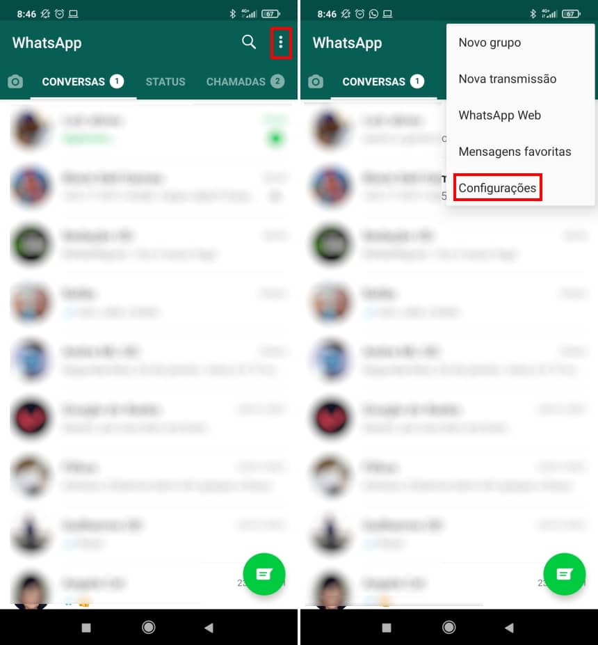 1. Abra o WhatsApp normalmente e entre em suas “Configurações”;