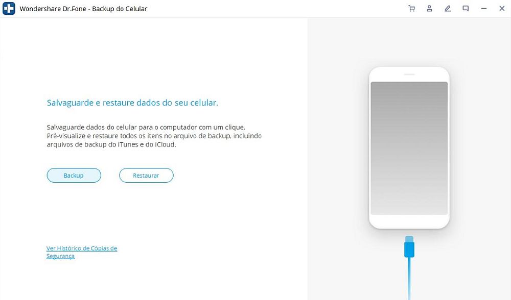 Com o software instalado, siga os passos abaixo para fazer um backup do seu smartphone com Dr.Fone:
