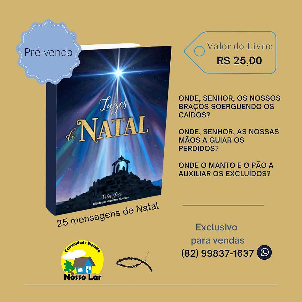 Para quem quiser reservar o livro Luzes do Natal, Nosso Lar disponibiliza no valor de R$ 25, 00 e o contato pra adquirir a obra é (82) 9 9837-1637.