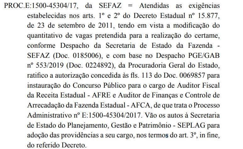 No documento, assinado em fevereiro, o procurador indica o aumento no número de vagas para o concurso Sefaz-AL. Além disso, o texto aponta o nome do Cebraspe como provável organizadora da seleção.