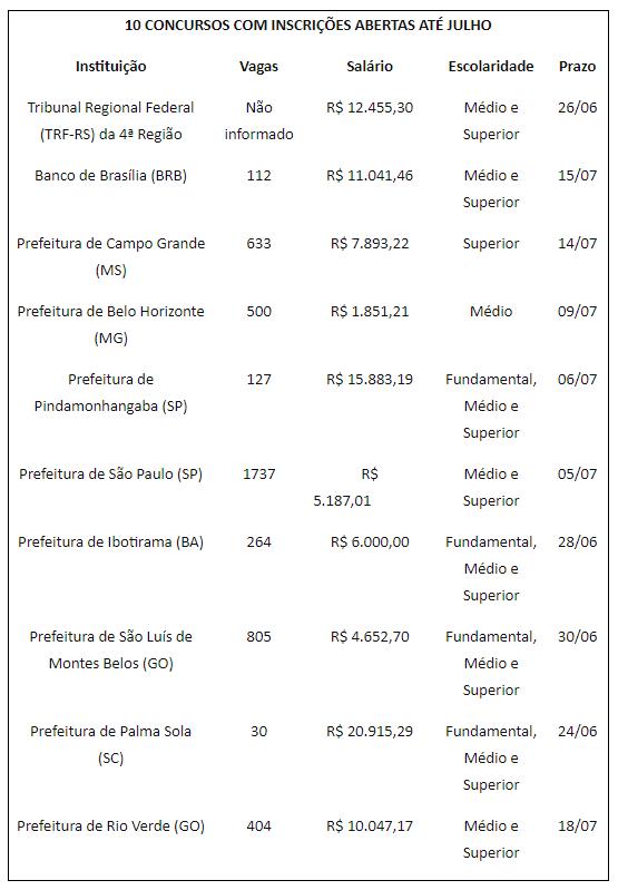 Enquanto esses concursos não chegam, o CORREIO levantou 10 processos seletivos abertos que o candidato não pode ficar de fora ainda esse semestre, seja por uma boa oferta de vagas ou por uma remuneração atrativa (veja tabela). Juntos, eles somam 4.384 vagas.