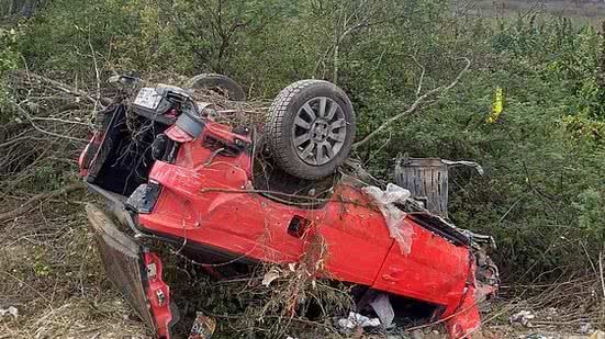 O carro foi encontrado de ponta-cabeça e totalmente destruído por causa do impacto. O acidente foi registrado pela polícia às 11h de hoje.