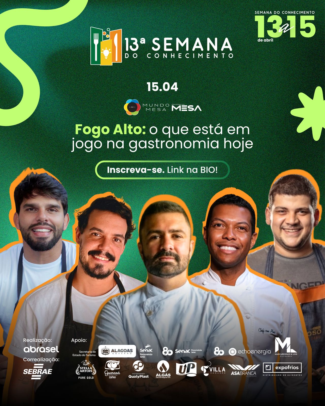 Anota aí: de 13 a 15 de abril tem a Semana do Conhecimento da Abrasel Alagoas. O evento reúne nomes de referência da gastronomia alagoana e também chefs de destaque nacional, como Carole Crema, na confeitaria, e o pernambucano Pedro Godoy, que vem se destacando com sua cozinha contemporânea no Arvo Restaurante em Recife. Com o tema “Food Trends (Tendências Gastronômicas) & Conexões: Pessoas, Negócios e o Novo Comer”, a programação acontece no Hotel Jatiúca e promete três dias de imersão, troca de experiências, networking e atualização estratégica para empresários, gestores e profissionais do setor. Imperdível, viu? Então já garante sua vaga: https://doity.com.br/13-semana-do-conhecimento