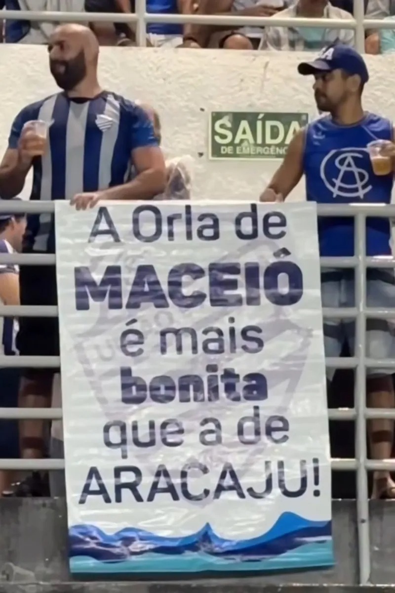 Antes mesmo da partida começar, torcedores do Azulão levaram uma faixa provocando o estado vizinho, afirmando que a orla de Maceió é a mais bonita. A imagem repercutiu nas redes sociais e gerou discussão.