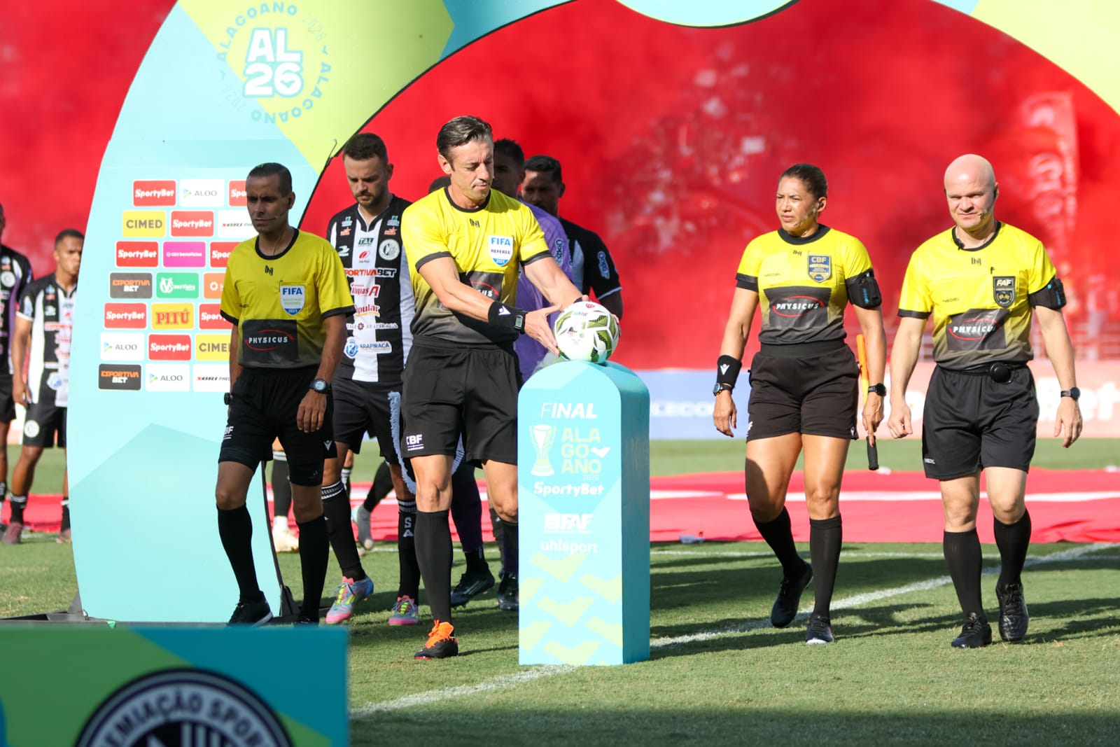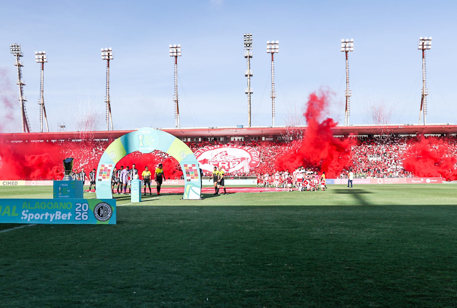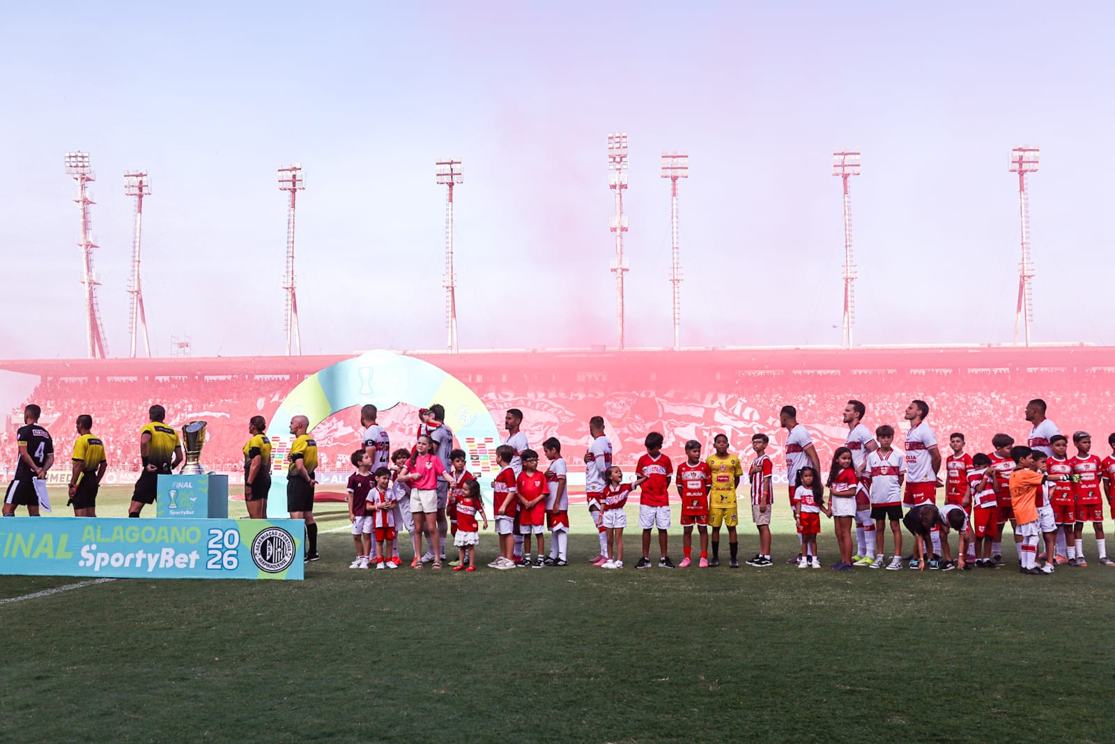 Antes do apito inicial, as arquibancadas foram tomadas por um bandeirão e um mosaico vermelho e branco. A entrada dos jogadores ainda contou com muita fumaça vermelha, que tomou conta do estádio.