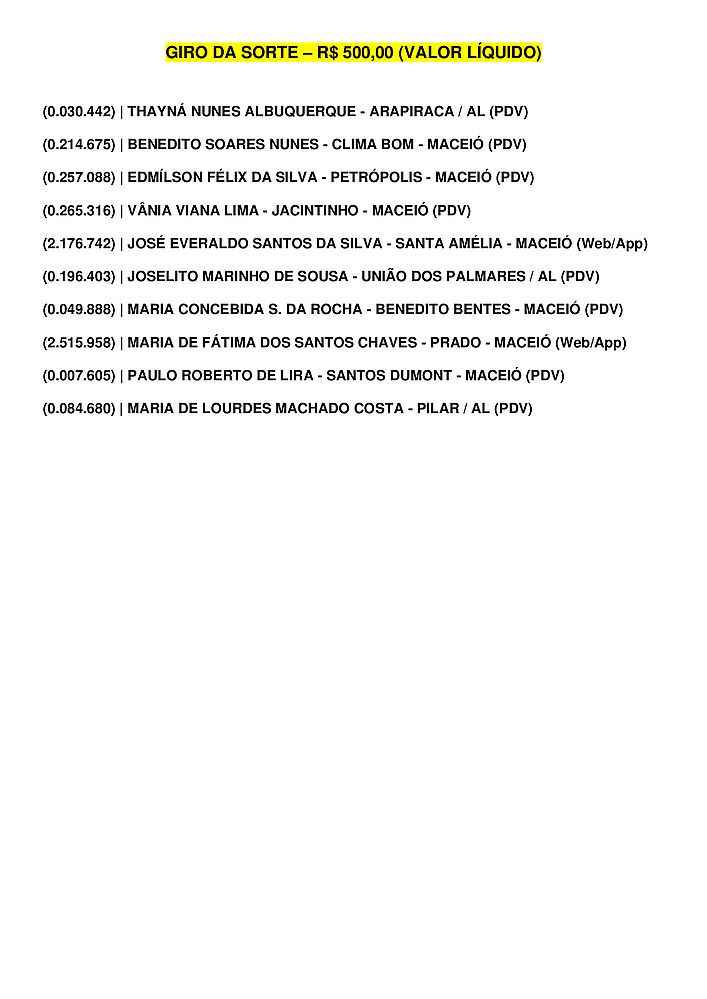 Veja os ganhadores do sorteio do Alagoas dá Sorte deste domingo, 23 de novembro
