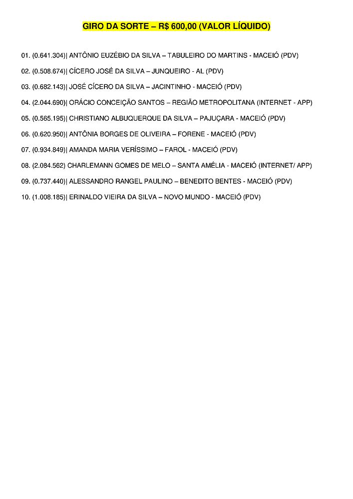 Confira o resultado e os ganhadores da edição deste domingo, 12, do Alagoas dá Sorte.