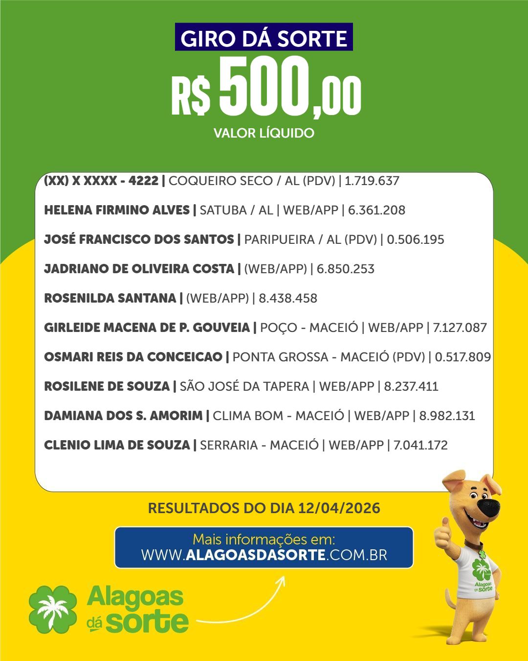 Quina para Maceió e 46 quadras para Alagoas: veja último prêmio da Mega-Sena