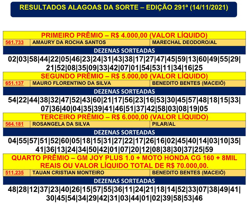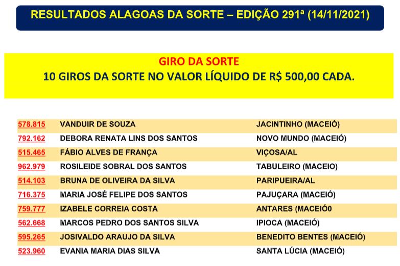 Confira os ganhadores do Alagoas dá Sorte deste domingo, 14.