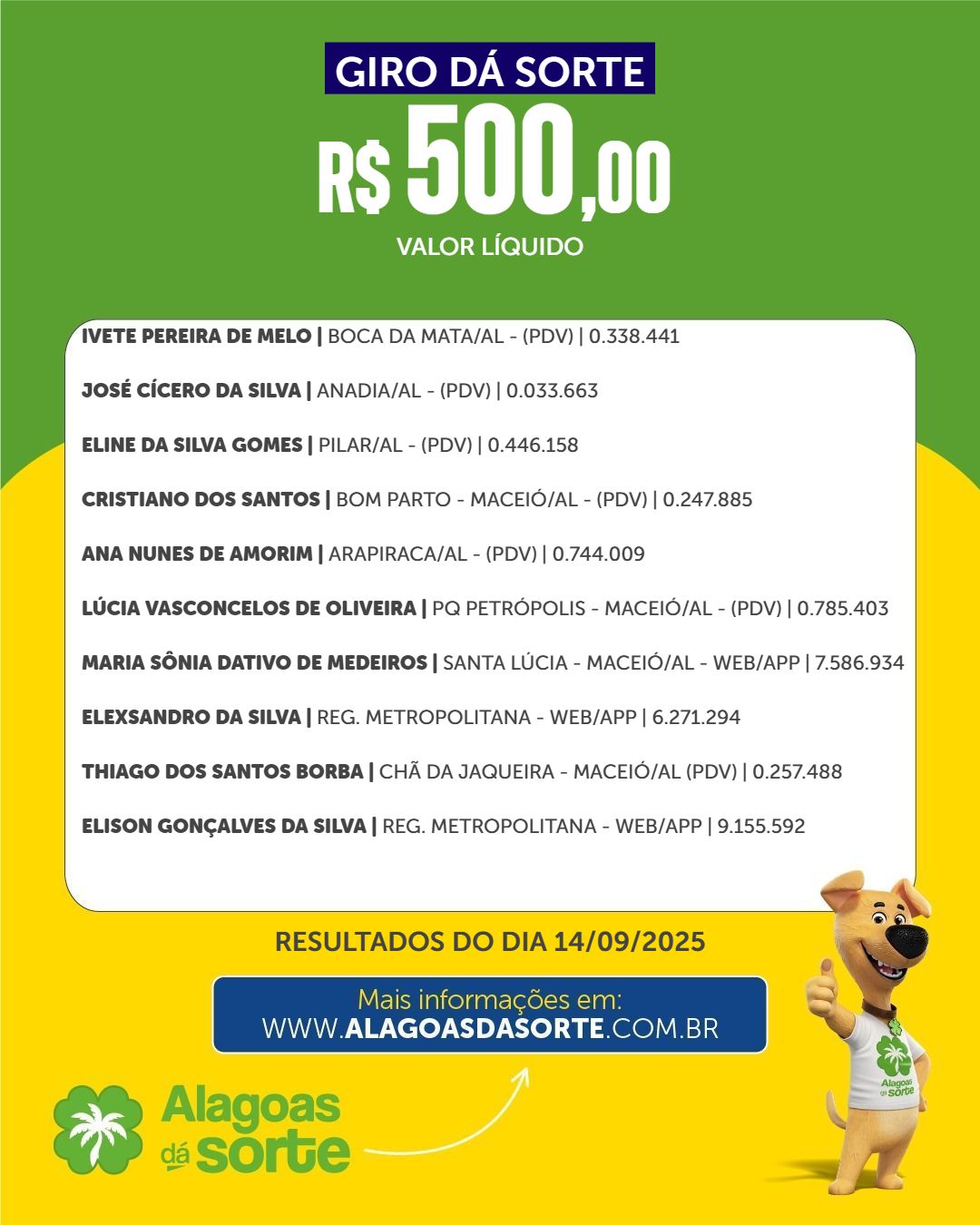 Conheça os ganhadores do Alagoas Dá Sorte deste domingo, 30 de novembro