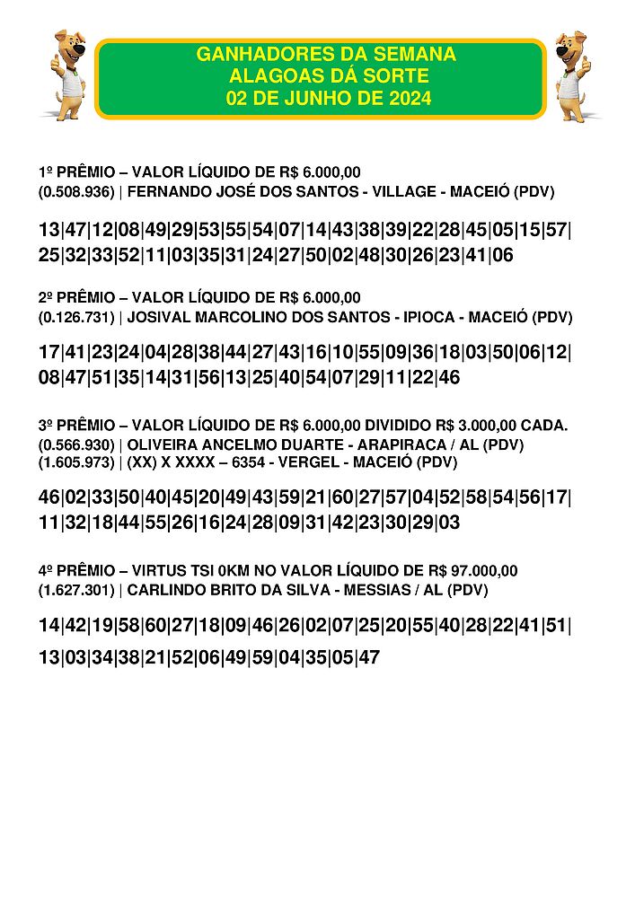 Veja os ganhadores do sorteio do Alagoas dá Sorte deste domingo, 23 de novembro
