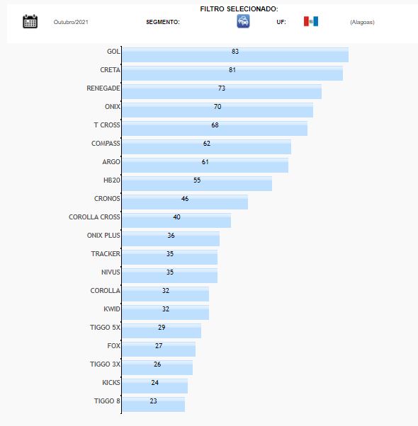 O mês de outubro teve um novo líder de vendas em Alagoas no segmento de veículos de passeio. E olha que o mais vendido não é um modelo recém-lançado não!