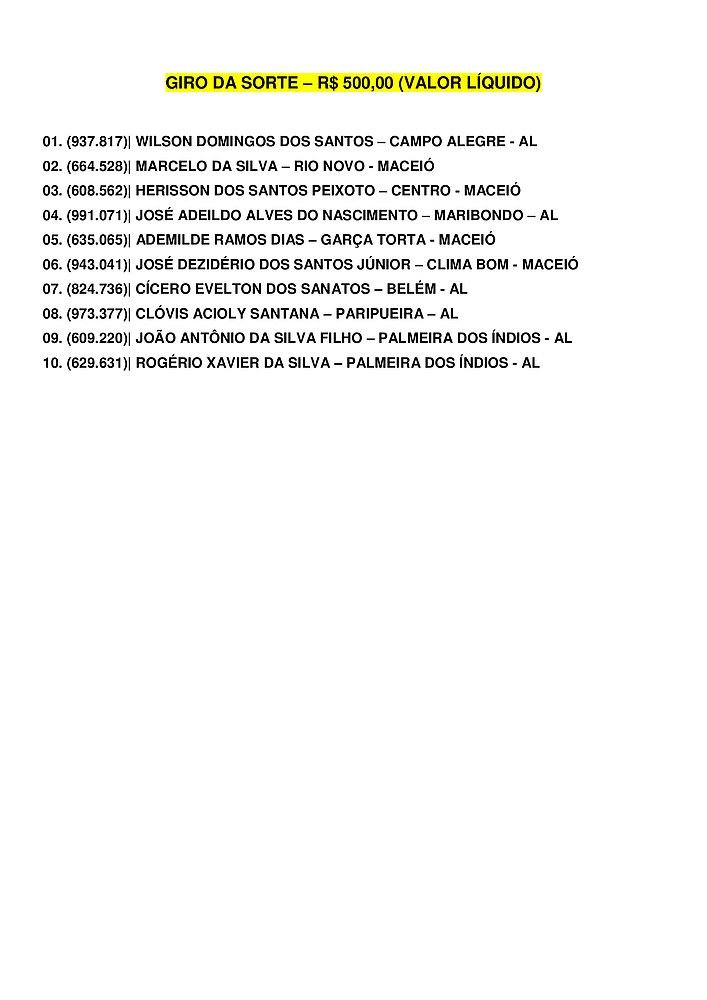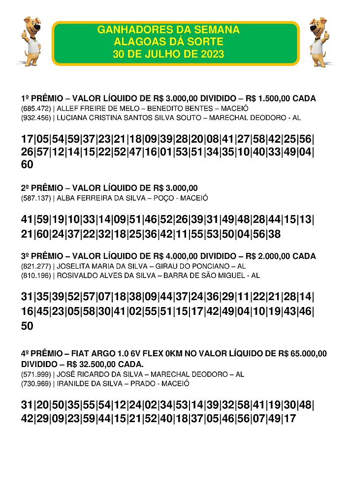 Confira os ganhadores do Alagoas dá Sorte deste domingo, dia 6 de agosto de 2023.