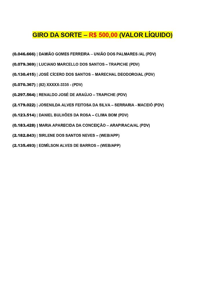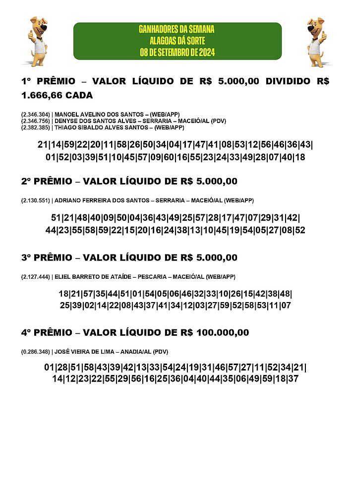 Confira os ganhadores do Alagoas dá Sorte deste domingo, dia 08 de setembro de 2024.