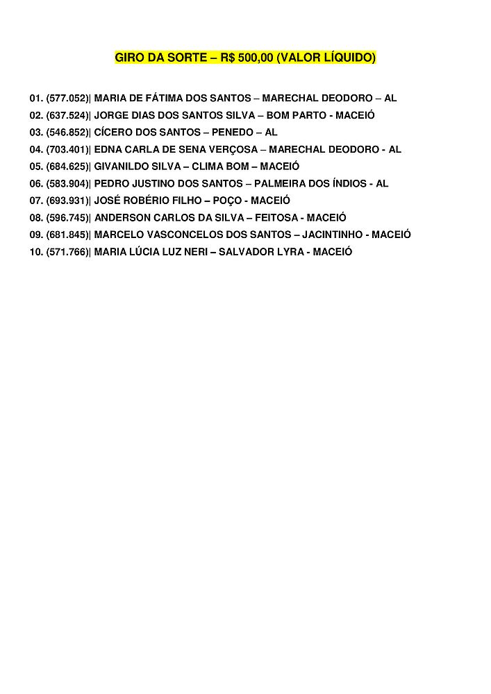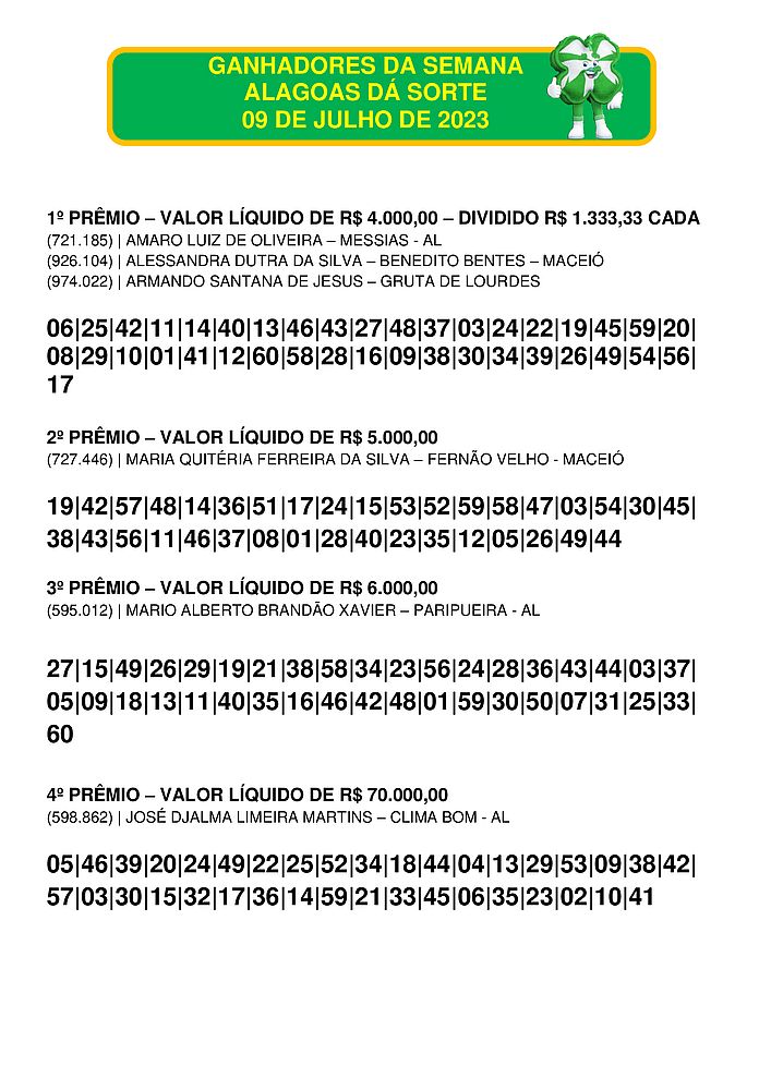 Confira os ganhadores do Alagoas dá Sorte deste domingo, 9 de julho de 2023.