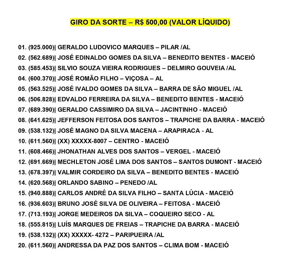 Veja os ganhadores do sorteio do Alagoas dá Sorte deste domingo, 23 de novembro