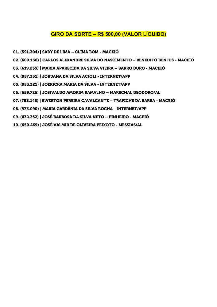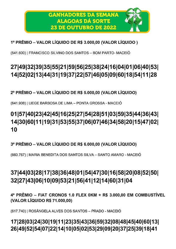 Confira os ganhadores do Alagoas dá Sorte deste domingo, dia 23 de outubro de 2022.
