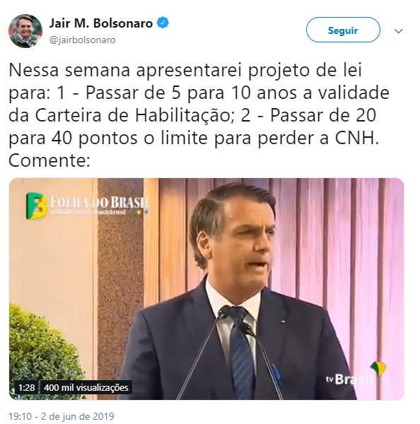 — Jair M. Bolsonaro (@jairbolsonaro) June 2, 2019
