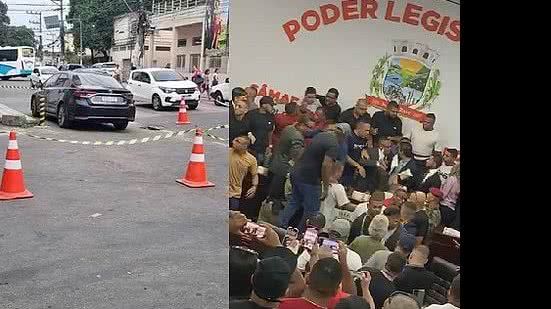 Imagens gravadas no plenário mostram vereadores e funcionários trocando agressões. Segundo relatos, o tumulto contou ainda com um homem armado e tiro para o alto.