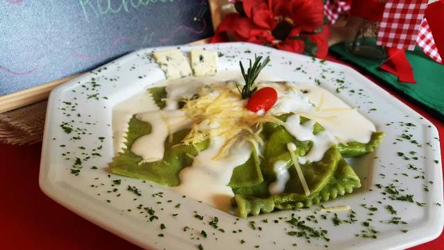 Ravioli de espinafre com frango da Mangiare no Conjunto Graciliano Ramos