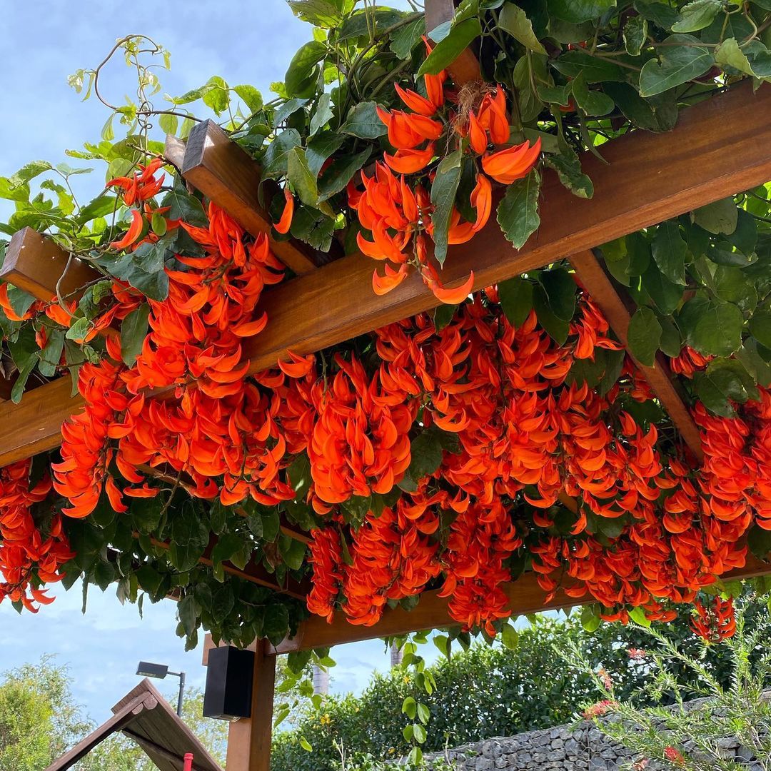 Essa trepadeira, com nome científico Mucuna bennetti é originária da Nova Guiné e impressiona pelo tom vermelho vivo das suas flores, que geralmente ocorrem uma vez por ano. A beleza das flores, que podem ser vermelhas, verdes, amarelas e também lilás pode ser contemplada em um curto prazo de três semanas. Mas, mesmo sem o colorido, a espécie mantém a aparência ornamental que vai engrandecer o seu jardim.