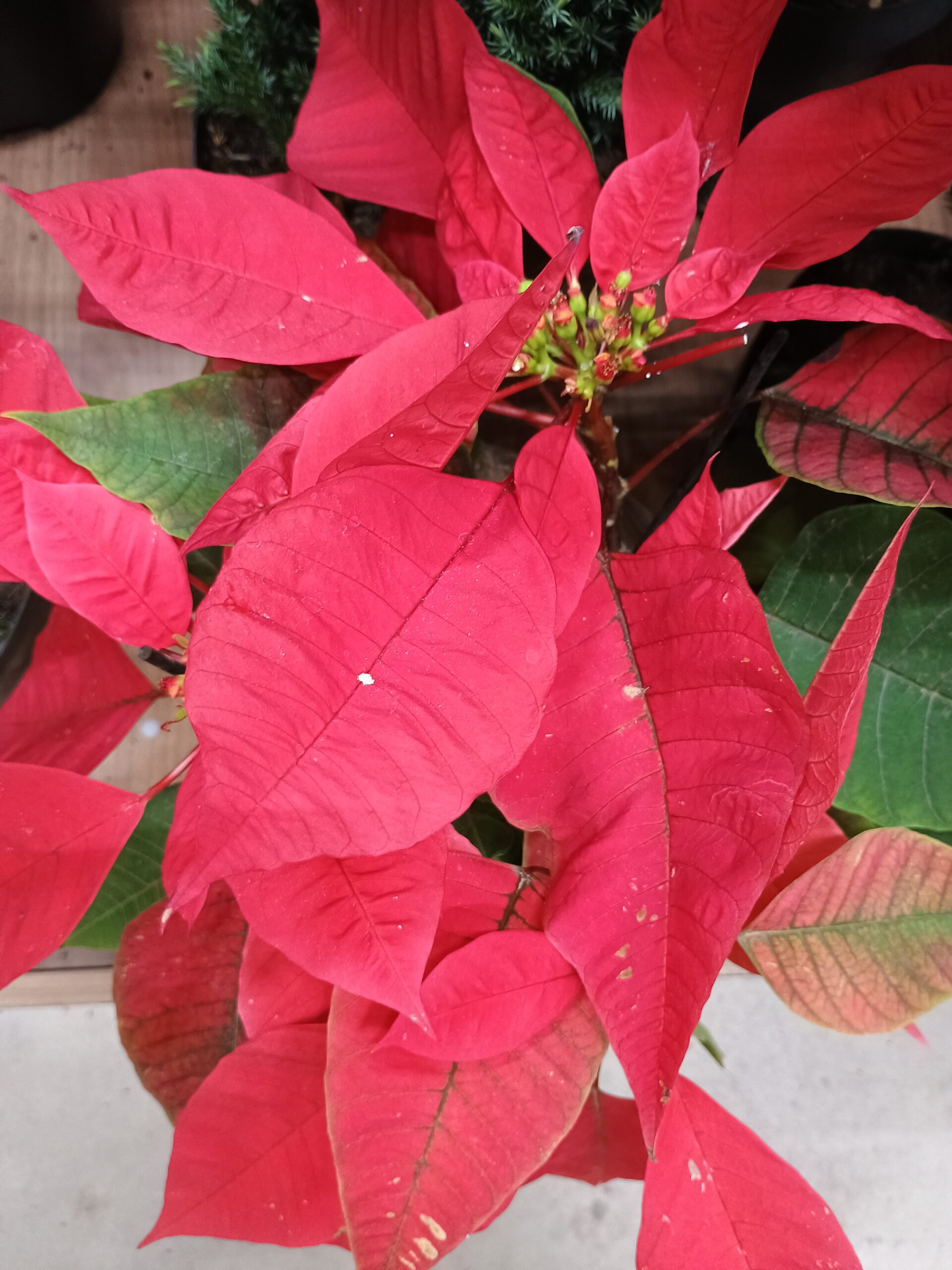 A poinsétia, cujo nome científico é Euphorbia pulcherrima é uma planta originária do México e pertence à família das Euphorbiaceae. Sua principal característica são as suas folhas largas que podem ter diversas cores: vermelho, a mais popular pela questão do Natal, rosa, creme, roxa, salmão, amarelo ou até mesmo branco. Essa parte colorida, que muita gente acredita ser a flor, na verdade são brácteas, ou folhas modificadas, similar ao que acontece na primavera ou buganvília. As flores verdadeiras são pequenas e ficam no centro.