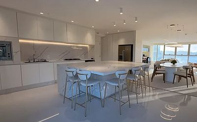 A propriedade fica localizada no Yachthouse Residence Club, construção conhecida como "Torres Gêmeas". Com vista para o mar, o edifício tem 281 metros de altura, divididos em 81 andares. O prédio fica localizado em uma curta faixa de terra entre a praia e um rio, que conta com um pequeno cais, onde pequenas embarcações ficam estacionadas.