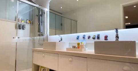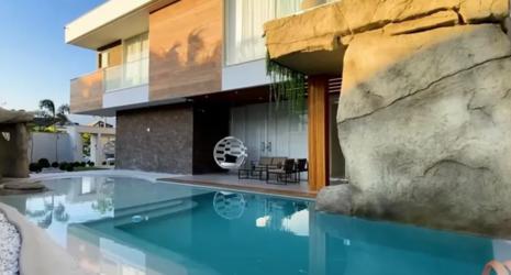 A mansão também conta com área gourmet totalmente integrada a sala, banheiro de apoio, churrasqueira e forno de pizza. O valor do condomínio sai a R$ 1,2 mil mensais. Já o IPTU custa R$ 6.350 anual.