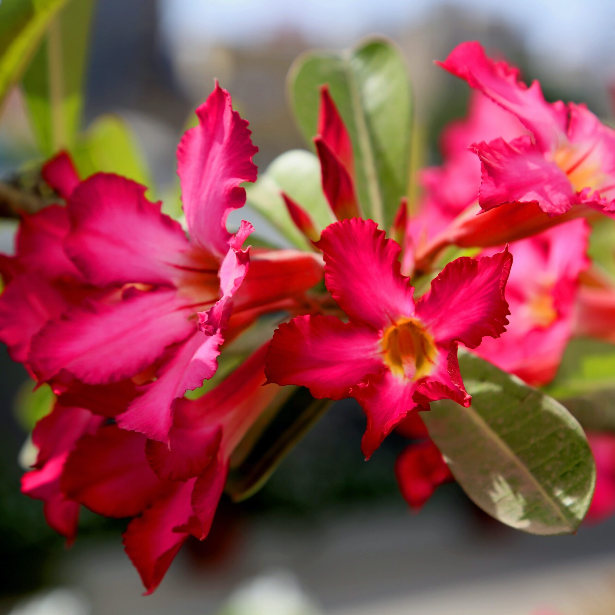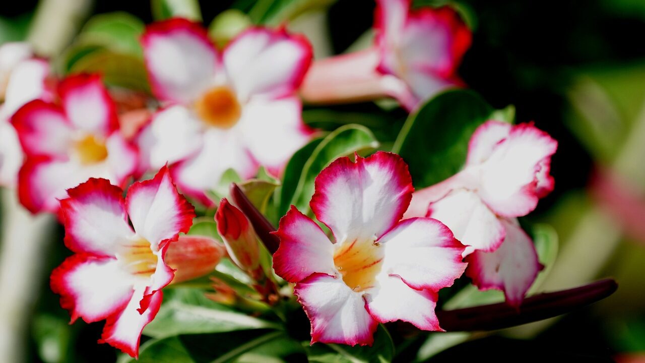 Conhecida como rosa-do-deserto de verão, a Adenium swazicum é uma excelente opção para quem procura plantas que florescem durante todo o ano, além de serem as mais resistentes às alterações climáticas.