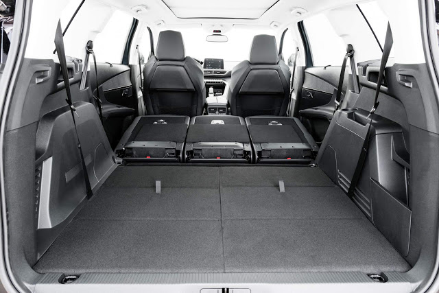A terceira fileira é composta por dois bancos retráteis guardados no piso do porta-malas. Dois flaps articulados em três seções cobrem os dois bancos quando dobrados, propiciando uma superfície de carga perfeitamente plana. Esses bancos acrescentam um elemento novo e engenhoso, inédito no segmento e que permite aumentar rapidamente o espaço de carga.