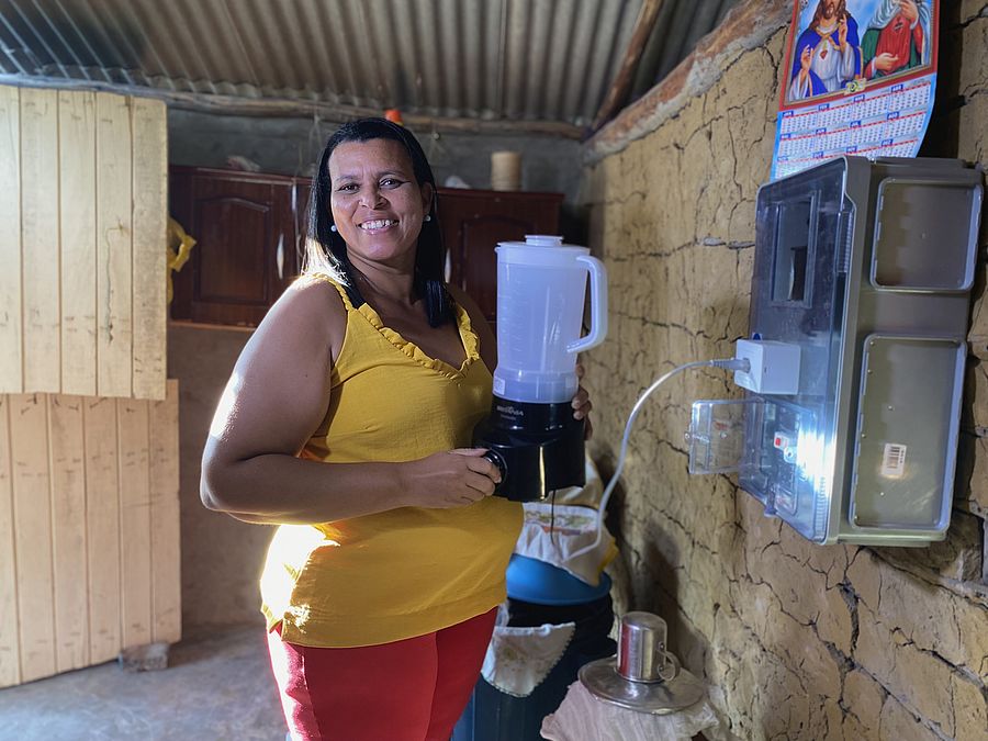 Ele conheceu Adriana há poucos anos atrás, quando ela morava na área urbana de Piaçabuçu. Hoje, é ela a responsável pelos cuidados da casa. Com gosto pela cozinha, ela lamentava não poder contar com eletrodomésticos que iriam facilitar os processos de seus mais diversos pratos. “Sempre quis ter um liquidificador, uma geladeira, e não era possível. Os sucos que eu fazia eram todos batidos na mão. Era bem difícil, especialmente para uma dona de casa que queria fazer uma comidinha mais saudável e uma sobremesa para guardar na geladeira”, lamentou, com um sorrisão estampado no rosto, Adriana mostra que conseguiu realizar um de seus sonhos: ter e poder utilizar um liquidificador.