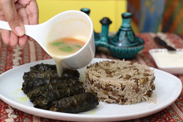 Para comer o charuto há um ritual gastronômico. Primeiro, regue as folhinhas recheadas com o caldo preparado no próprio cozimento do charuto. O caldo depois é incrementado com tomate, cebola, alho e manteiga, ficando um pouco azedinho. Também deve-se adicionar a coalhada no charuto, para viajar nas tradições da culinária árabe, que tanto aprecio.